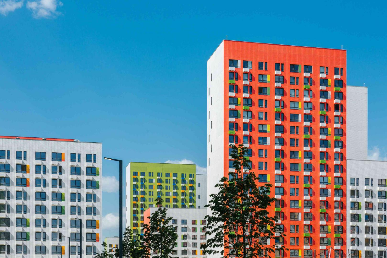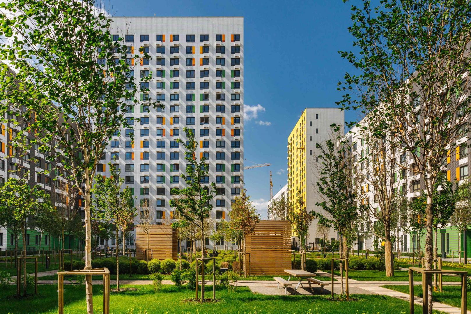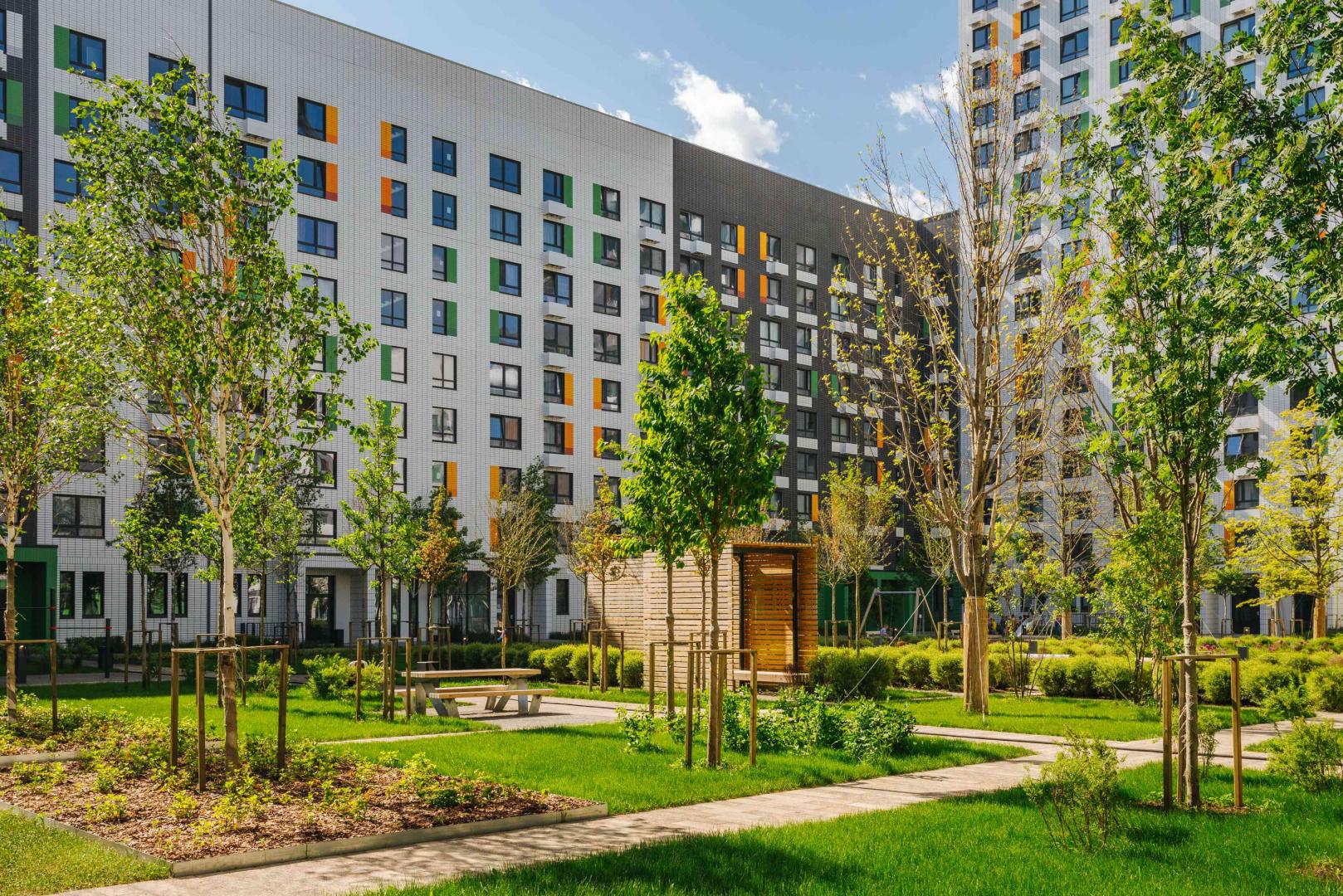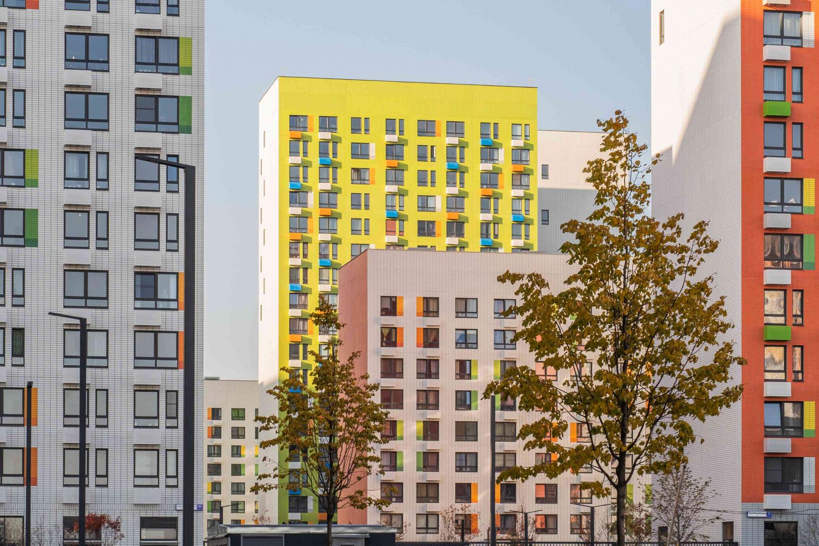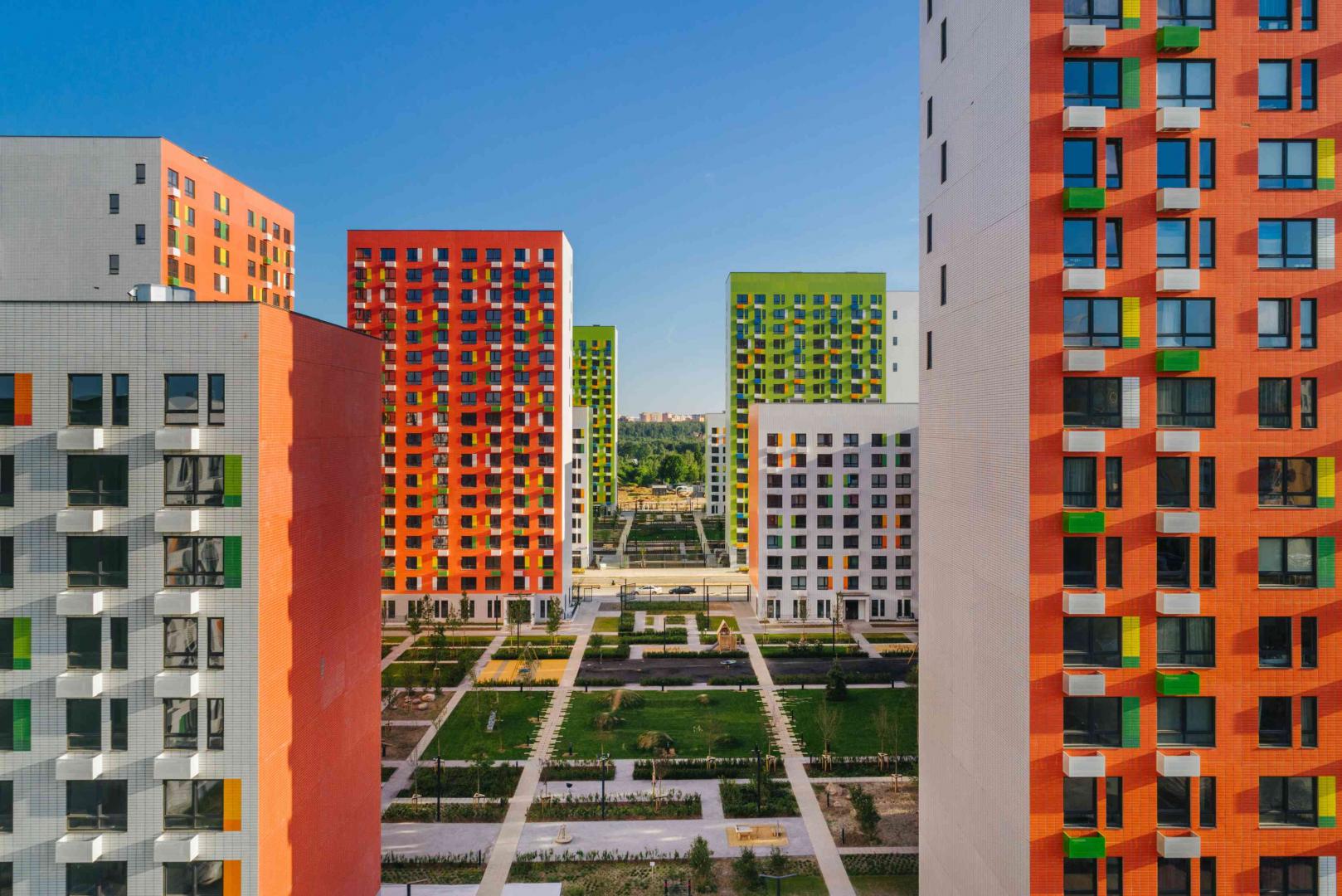 Данный проект глобален, он представляет собой 8 очередей строительства. Три из них уже введены в эксплуатацию, сдача остальных планируется до конца 2019 года. Здесь будет 19 жилых зданий эконом-класса различной этажности (9-18) и объекты инфраструктуры (паркинги, школа, детские сады, поликлиника). Внешняя отделка фасадов выполнена яркой зеленой и белой керамической плиткой. Расстановка домов спроектирована таким образом, чтобы сформировать закрытые, безопасные дворы, в которые машины въехать не смогут. Выходы из подъездов в две стороны: внутренний двор и внешняя улица. Все подъезды без ступеней, лестниц и пандусов, что является дополнительным удобством для жильцов. В каждом установлены пассажирский и грузоподъемный скоростные лифты с увеличенной кабиной. Есть комнаты для консьержа, а также помещения для хранения колясок и велосипедов.