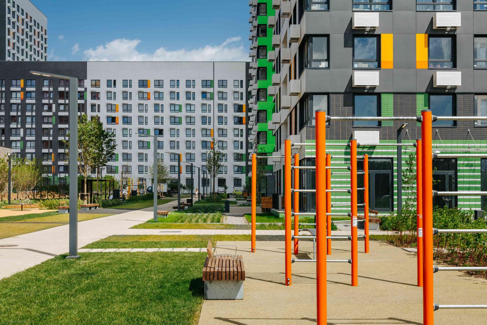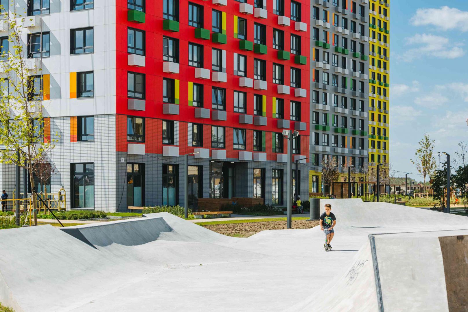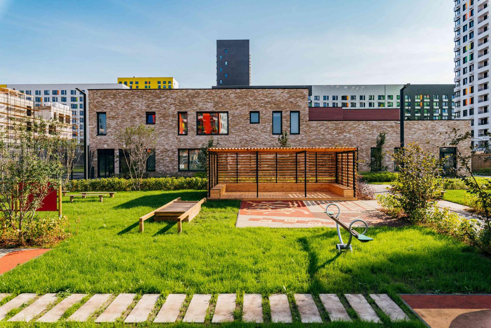 Огромный уличный детский комплекс. В каждом дворе детские игровые и спортивные площадки. Планируется строительство общеобразовательной школы, трёх детских садов и поликлиники.