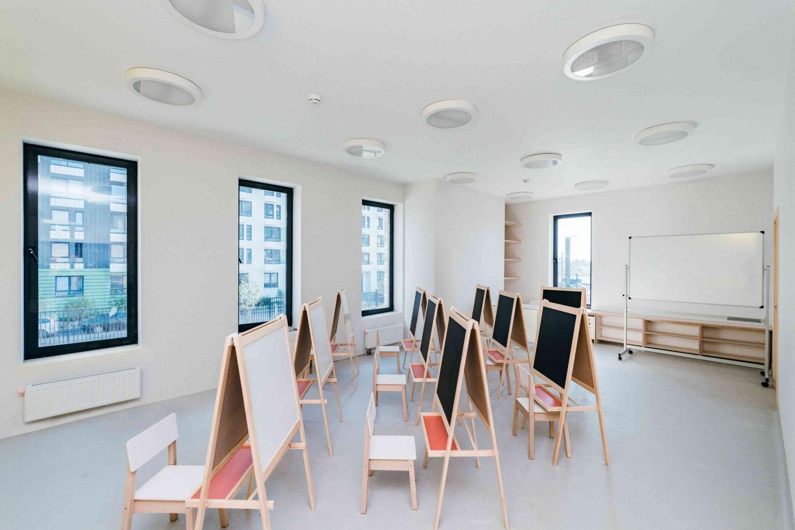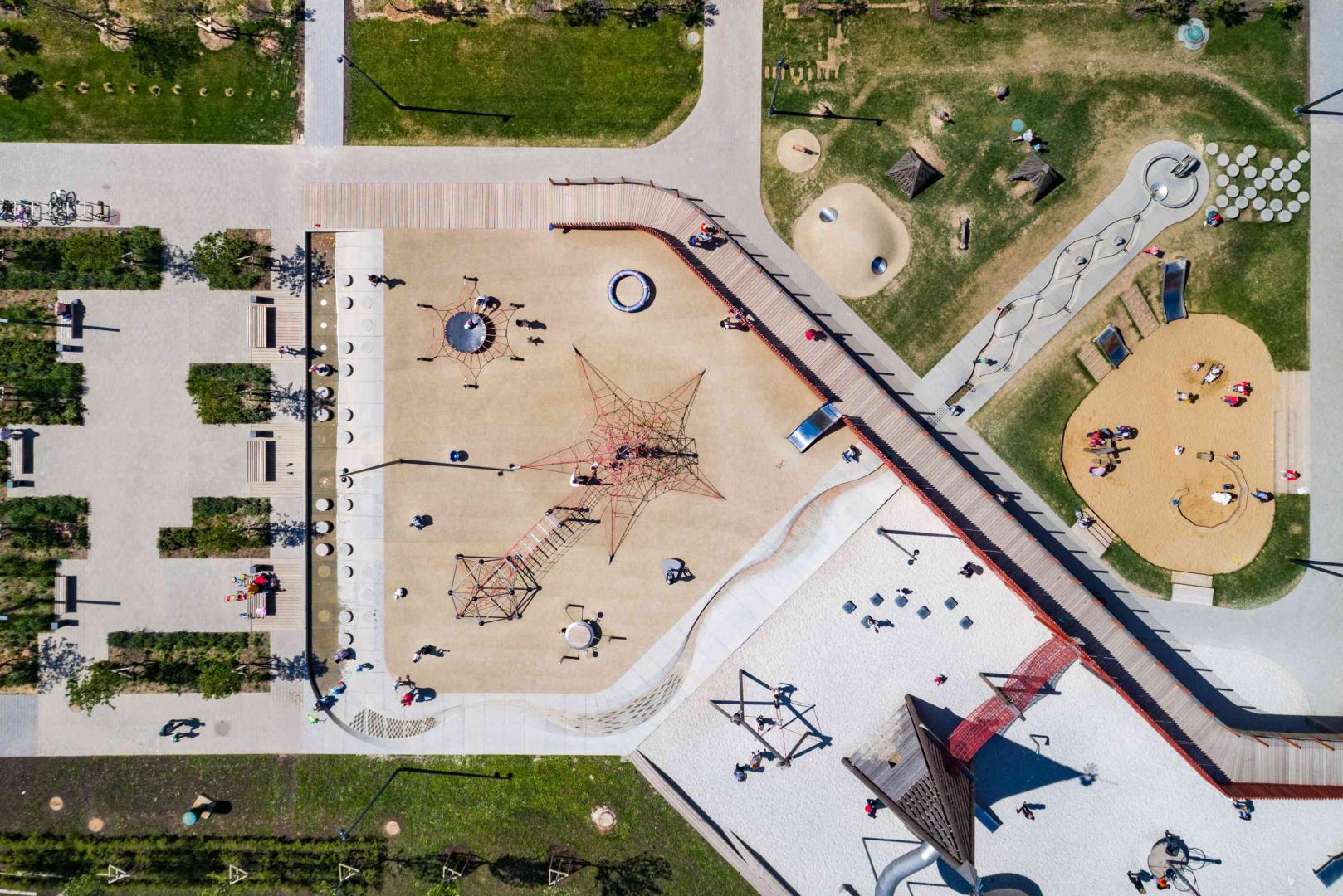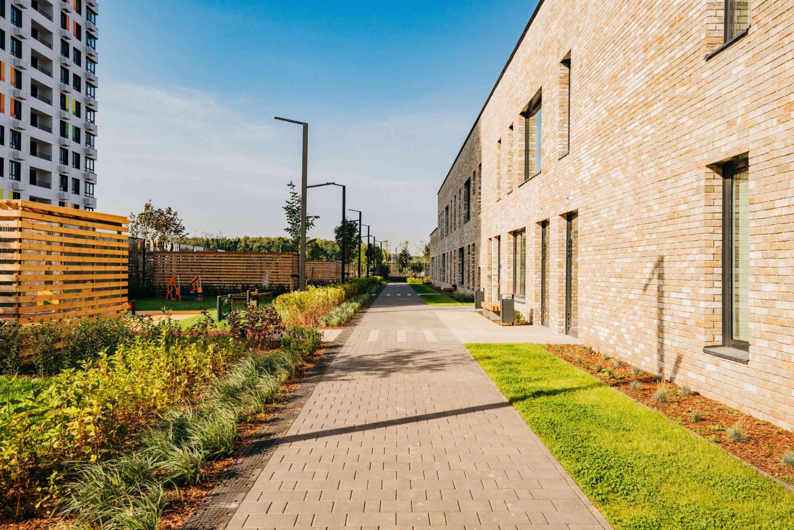 Огромный уличный детский комплекс. В каждом дворе детские игровые и спортивные площадки. Планируется строительство общеобразовательной школы, трёх детских садов и поликлиники.